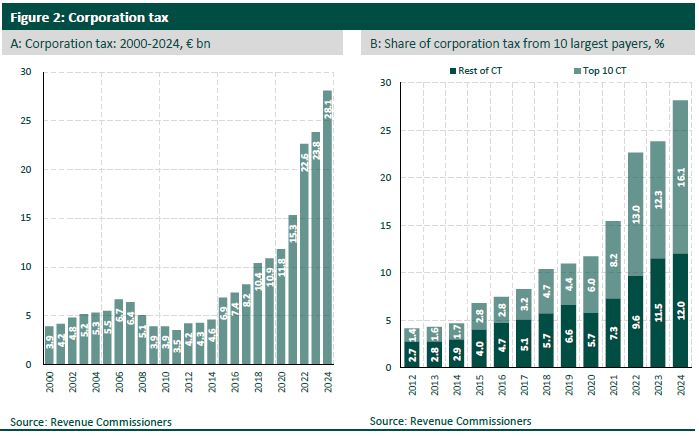 Growing emergence and dependence on corporation tax revenue above and concentration of corporation tax revenue highlighted below: Public Services and Social Spending Key investments include: